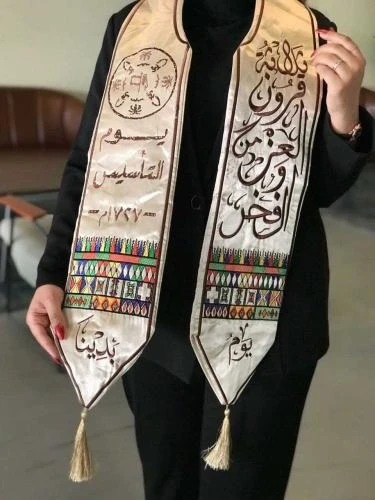 <h1>وشاح يوم التأسيس السعودي</h1><p> </p><p>احتفل بتراث المملكة العربية السعودية العريق مع وشاح يوم التأسيس السعودي. صُمم هذا الوشاح خصيصًا ليعكس الفخر والاعتزاز بالهوية الوطنية، وهو مثالي لكل من يرغب في التعبير عن حبه للوطن بأسلوب أنيق ومميز.</p><p> </p><p><strong>تصميم أنيق:</strong> يتميز الوشاح بتصميم يجمع بين الأصالة والحداثة، مما يجعله قطعة فريدة تليق بكل المناسبات الوطنية.</p><p> </p><p><strong>جودة عالية:</strong> مصنوع من مواد فاخرة تضمن الراحة والمتانة، مما يجعله مناسبًا للاستخدام اليومي أو المناسبات الخاصة.</p><p> </p><p><strong>ألوان وطنية:</strong> يتوفر الوشاح بألوان تعكس العلم السعودي، مما يضفي لمسة وطنية على إطلالتك.</p><p> </p><h2>المواصفات:</h2><p> </p><ol><li><span class="ql-ui" contenteditable="false"></span>المادة: قماش فاخر عالي الجودة</li><li><span class="ql-ui" contenteditable="false"></span>الأبعاد: 180 سم × 70 سم</li><li><span class="ql-ui" contenteditable="false"></span>الألوان: أخضر وأبيض</li><li><span class="ql-ui" contenteditable="false"></span>التصميم: مستوحى من التراث السعودي</li></ol><p> </p><p>اجعل من وشاح يوم التأسيس السعودي إضافة لا غنى عنها لخزانة ملابسك، واحتفل بفخر بتاريخ المملكة العريق.</p>